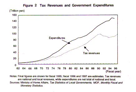 Balance sheets are also deteriorating at local government levels, whose outstanding loans are estimated at 150 trillion yen ($1.25 trillion). According to the OECD, in 1996 the government sector's aggregate budget deficit reached approximately 7 percent of nominal GDP, one of the worst figures among the industrialized nations.