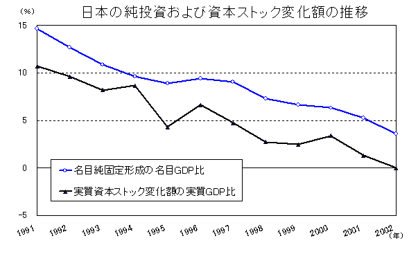 - 貯蓄率低下と資本ストックの減少