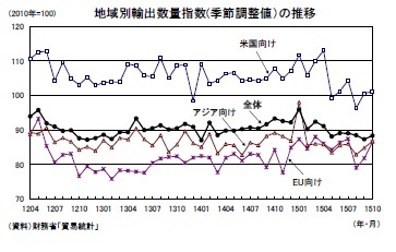- 貿易統計15年10月~季節調整値の貿易収支は赤字が継続