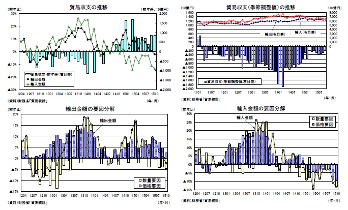 貿易統計15年10月~季節調整値の貿易収支は赤字が継続のレポート Topへ