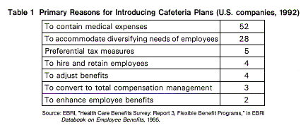 The cafeteria plan has been credited with helping to contain medical costs of companies in the U.S. In Japan, where large companies are particularly burdened by rising mandatory employee welfare costs, the plan's perceived effect of containing costs is no doubt alluring.