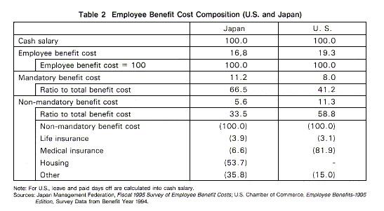 Furthermore, even if such limited cafeteria plans are implemented, there remains the question of whether costs can be contained. Theoretically, a ceiling on point allotments should limit costs. However, there is no guarantee that the point ceiling can be maintained in the future, particularly if employees or unions demand increases. If we also consider the operating costs associated with the menu choices, the Japanese cafeteria plan has a limited effectiveness in containing mandatory benefit costs, a major part of total employee benefit costs.