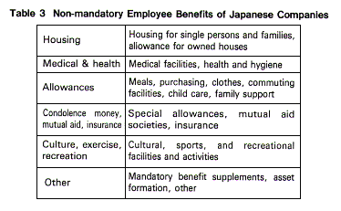Since only one-fourth of the U.S. population is covered by public medical insurance, companies play an important role in providing medical insurance to employees and their families. Since the 1980s, to contain rising medical costs, traditional types of medical insurance have been augmented by new "managed care" forms of medical insurance (in which medical institutions are networked and a fixed number of patients guaranteed to control medical costs) such as HMO (health maintenance organization) and PPO (preferred provider organization). To contain rising medical costs, U.S. companies offer several types of medical insurance in their cafeteria plans. The less cost-effective traditional forms of medical insurance cost more points than managed care medical insurance, and also cost correspondingly more in premiums. By setting points in this way, companies have been able to induce employees to shift to more cost-effective forms of medical insurance. In this way, cafeteria plans combined with managed care medical insurance have helped contain corporate medical costs to an extent. However, some U.S. companies interviewed by the author admitted that when not only medical costs but operating costs are considered, cafeteria plans costs do not always come out ahead. This point needs to be kept in mind when discussing the cost effectiveness of cafeteria plans in the U.S. (4) Scope of Cafeteria Plans in Japan In Japan, all persons are covered by public health care, and health insurance premiums are included in mandatory employee benefit expenses. Naturally, mandatory employee benefit costs, which have been rising year after year and now comprise 66.5 percent of total benefit costs, cannot be included in cafeteria plan menus. Since the only discretionary area left for Japanese companies to control costs is in non-mandatory benefits, which comprise a small portion of total benefit costs, cafeteria plan menus are also likely to be limited to non-mandatory benefits. Moreover, not all non-mandatory benefits are suitable to be menu choices (Table 3). For example, single-person and family housing, which comprise the majority of housing costs, are often closely linked to personnel transfer policies. In addition, considering the intended aim, money paid out for condolences or congratulations is not appropriate as a benefit, nor are cultural, sports, and recreational activities intended to increase workplace solidarity. When companies own housing and other facilities, the associated benefit choices may not be very cost-effective due to a loss of economy of scale. Excluding these measures from the non-mandatory benefits would further limit the scope of menu choices in Japanese cafeteria plans.