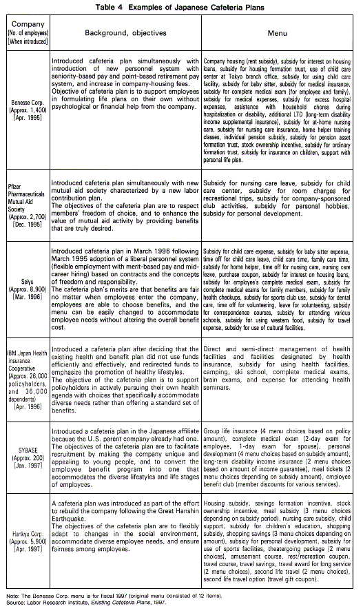An Overview of Japanese Cafeteria Plans -Objectives and Results