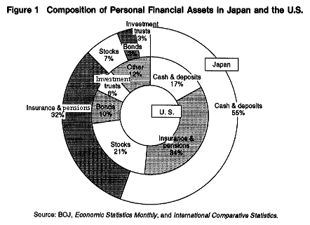 The main player in the coming financial "Big Bang" will be individual investors, owners of 1,200 trillion yen in financial assets. Whereas cash and deposits comprise 17 percent of personal financial assets in the U.S., the same ratio in Japan is an extremely conservative 55 percent. However, this composition of assets is likely to diversify (Figure 1).