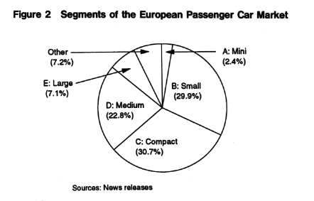The key point is whether Honda will introduce models in segments A and B, which are smaller than the present Civic and expected to comprise a growing portion of the European market. After discontinuing the mutually complementary tie-up with Rover, Honda has no entries in these segments. Honda's performance in these segments will affect the attainment of its 300,000-unit sales goal and independent position in Europe.