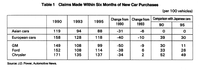 In particular, quality improvements can be attributed not only to the efforts of European automakers, but to the development of local venders by Japanese automakers, and to local production by Japanese parts suppliers. Since 1990, European automakers have closed the quality gap with Japanese and other Asian automakers, and have attained the same level as Ford.