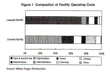 As stated earlier, the difficulty of knowing comprehensive facility costs due to indirect factors such as accounting practices, and strong resistance to disclosing the cost if known, are barriers to the penetration of facility management. Another persistent obstacle is the typically Japanese notion that comfortable offices are an extravagance.