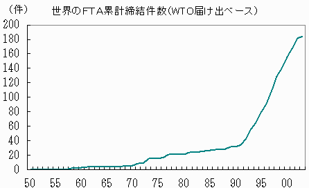 | 1.FTA加速論の背景 日本はアジア諸国との自由貿易協定(以下、FTA)締結を急ぐべきとの声が高まっている。背景には、90年代以降、世界各国で世界貿易機関(WTO)による多国間協定を補完するものとしてFTAの締結が急増したことがある(図表)。 欧州ではすでに高い次元の統合が実現、2004年5月には中東欧など10カ国が欧州連合(EU)に加盟、統合は地域的にも拡大する。米州では94年の北米自由貿易協定(以下、NAFTA)の成立に続き、2005年1月の妥結を目指し、南北アメリカを統合する米州自由貿易協定(FTAA)の交渉が進められている。FTA締結の動きが相対的に低調であったアジアでも、東南アジア諸国連合(以下、ASEAN)の中継貿易基地・シンガポールが域内・域外とのFTA締結に積極的に取り組んでいるほか、韓国もチリとFTAを締結、中国もASEANとのFTA実現に動きだすなどFTAへの気運が盛り上がりを見せている。 ![]() FTA加速論は、直接的には、FTAの広がりで参加のベネフィットとともに、参加しない不利益が強く意識されるようになったことによるものだ。メキシコがNAFTAに続き、2000年にはEUとFTAを締結、日本企業が不利益を被ったことは大きな教訓となっている。今後、ASEAN-中国のFTAが実現すれば、両地域を軸に、クロスボーダーな生産・物流ネットワークを築いている日本企業にとっては拠点の効率化などを通じてベネフィットを享受する余地が生まれる。しかし、日本のFTA推進が遅れをとれば、日本国内の産業空洞化を招くばかりでなく、将来のアジア域内の経済連携強化のためのルール作りへの影響力低下にもつながることが危惧されるのである。 2.アジア地域統合戦略への欧州からの示唆 日本の実際の取り組みは、2002年11月に初の二国間FTAである「日シンガポール新時代経済連携協定」が発効、メキシコ、チリの他、韓国、台湾、タイ、フィリピン、ASEANとのFTAについて協議・検討している段階にある。平成15年版の「通商白書」では、こうした取り組みを、「日中韓やASEAN+3へと広げ、また台湾・香港との連携にも結び付け、より広い東アジア大の地域的経済統合を実現していくことが、今後の戦略的課題」として、統合推進への意思が示された。 日本が、こうした地域統合戦略の実現の道筋を模索する際、統合の深さと地域的な広がりの両面で先進している欧州統合の経験からは多くの示唆を得ることになるだろう。ここでは2つの基本的なポイントを挙げておきたい。 第1に、一定の深さと広がりをもつ統合の実現には長い時間を要することと、その間、国家主権の制限を伴う統合へのダイナミズムを維持するには、統合の必然性とベネフィットに対する意識の共有が必要となることだ。EUの場合、通貨統合の実現、市場統合への中東欧の参加までに50年もの歳月を要した。地域統合は平和と安定の確保に資するという政治的な意思が共有されたことが、経済的なベネフィットへの期待感以上に、欧州統合の原動力として重要な役割を果たしてきた。 アジアにおける経済連携の枠組みは、東アジア自由貿易協定(EAFTA)といった形で、事実上の域内分業のネットワークが広がっている範囲をカバーし、関税・非関税障壁の撤廃のみならず、カネ、ヒト、サービスの移動を円滑化する協定も盛り込まれることが理想である。しかし、アジアの現状と照らし合わせれば、これが容易に達成できる目標でないことが明らかだ。中国は2001年12月にWTO加盟を果たしたばかりで、WTOルールとの整合化のための市場開放、投資環境改善を進めている段階にある。ASEANではASEAN自由貿易地域(AFTA)の関税引き下げ計画は履行されたが、手続きの煩雑さやルール執行の不統一などの問題が残されており、FTAの推進意欲も履行能力も国毎に温度差がある。IT分野の工程間分業に欠くことのできない台湾の参加には政治的な障害が存在する。時間をかけて、これらの障害を乗り越え、FTA網の拡充などを経て、最終的に地域統合の実現に至るには、持続する政治的な強い意思が求められるのである。 日本国内においても、アジアとの連携強化で構造調整にはずみをつけ、アジア市場における存在意義を確立することが、経済的な繁栄を維持する有効な方策となることへの国民的なコンセンサス作りが必要であろう。 第2に、広い分野にわたる統合の実現は、通貨の障壁を取り除く必然性を高めることから、通貨面での政策協調についても検討していく必要があるということだ。欧州の統合は関税同盟から市場統合へと段階的なステップを踏んだが、93年の市場統合の完成で、域内における為替の障壁が市場統合の実効性を妨げる要因として強く認識されるようになり、通貨統合を後押しすることになった。その後、比較的短い期間で通貨統合が達成された背景には、70年代以降、通貨面での域内政策協調が試みられていたことがあった点も忘れてはならない。 アジアでは、通貨危機を教訓に、二国間で通貨急落時に介入通貨を融通し合うスワップ協定を締結する動きが広がった。通貨危機