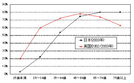 | 1.人生における住宅:日本は「双六」、英国は「梯子」 人生における住まいとの関わり合いは、わが国においては「双六(すごろく)」に譬えられる。「終(つい)の棲家」となる広い持家に移れば、そこで「上がり」だ。興味深いことに、英国では人生における住宅の変遷は「梯子(はしご)」に譬えられる。ライフステージや経済状況に応じて「上がり」もあれば、「下がり」もあるというのである。 日本と英国の年齢階層別持家率 しかし、持家から賃貸住宅へ住み替えをする高齢者世帯よりも、持家から持家へ住み替える高齢者世帯の方が断然多い。その実態は、小規模な持家への買い換えを行うことによって売買差額を金融資産に転換するというものである。 英国でも、住み替え自体は、現役期の方が活発に行われる。就職や転職を機に、あるいは、家族構成の変化の際にというだけでなく、所得の状況に応じて柔軟な住み替えが行われる。住宅ローンを利用して持家を取得した後に利払いの継続が困難になったら、持家を手放して賃貸住宅に住み、所得状況が好転したら再取得するということも行われる。この場合、居住する住宅の面積も、総資産を住宅という形態で保有する割合も、一度は「下がって」、また「上がって」という推移になる。 日本ではこのように柔軟な住み替えは行われない。世帯という観点ではなく、住宅市場という観点から両国を比較すると、持家の取引が新築住宅中心に成り立っているのが日本であり、中古住宅中心に成り立っているのが英国である。そして、賃貸住宅と持家の代替性が低いのが日本であり、代替性が高いのが英国である。生涯にわたって豊かな住生活を実現するのに適した市場構造がどちらの国にあるかは明白であろう。日本の住宅市場においては、量的には十分なストックが存在するが、中古住宅と賃貸住宅が本来の機能を発揮していないという意味で、質的には未成熟な市場と言わざるを得ない。 2.増加する住宅ストックの有効活用を こうした構造を改善する最も手っ取り早い方法は、すでに十分な住宅ストックが存在するという状況を生かすことをおいて他にはないであろう。簡略に言えば、既存ストックの有効活用である。住宅ストックの量は既に充足されているというより、過剰気味だからである。 2003年に実施された「住宅・土地統計調査」によると、総世帯数が4722万世帯であるのに対して、総住宅戸数はそれを大きく上回る5387万戸も存在する。空家率は12.2%にも達している。ここで既存ストックの有効活用という観点から注目したいのは、住宅の所有者、特に複数の住宅を所有する持家世帯に関してである。 まず、「現住居を所有している世帯」は2571万世帯、「現住居以外の住宅を所有している世帯」は364万世帯と公表されている。「住宅を所有している世帯」は2638万世帯であるのに、「現住居を所有している世帯」はそれより67万世帯少ないということであるから、差の67万世帯とは「住宅を所有しているが現在は賃貸住宅に住んでいる世帯」と推測される。したがって、「現住居以外の住宅を所有している」364万世帯から67万世帯を控除した297万世帯が「現在居住している持家以外に何らかの住宅を所有している世帯」に相当するはずである。 住宅を所有している世帯の内訳(2003年) ちなみに、敷地に関して同様の試算を行うと、持家世帯の26%に相当する750万世帯が「現在居住している持家の敷地以外に何らかの住宅の敷地を所有している世帯」と推定される。 重要なのは、このように複数の住宅や敷地を所有する世帯の割合が今後も増加する可能性が高いことである。周知のとおり、戦後の高度経済成長期に地方から大都市へ人口が流入し、定着する過程で自分の代で新たに持家を取得した世帯が数多く存在し、そうした世帯の引退が徐々に進行している。その引退した高齢者世帯の約半分はこどもと同居しておらず、死亡時に当該住宅が遺産相続されるまでの間にこどもの多くは別途持家を取得しているとみられる。男女の初婚年齢、第一子出産時年齢、平均余命から判断すると、相続のタイミングとして最も多いのは「こども」が50歳代後半に達する頃と考えられる。思いがけず、引退間近に複数の住宅を所有してしまう世帯が今後増える可能性が高いということである。 親から相続した元「持家」であっても、所在する地域に自分や親族が住むニーズがあるとは限らない。その場合、空家のままで放置しておくのでなければ、賃貸住宅に転用するか、別荘として利用するか、売却するかの選択を迫られることになる。何らかの有効利用をしなければ、資産として残してくれた親への申し訳も立たないというものである。 つまり、相続された元「持家」が中古持家や賃貸住宅の供給源になり得るのである。そう言ってしまうと何ともやりきれない感じがするが、親から子という家族内の継承にとどめて空家にしてしまうのではなく、社会全体で前の世代が築いたスト