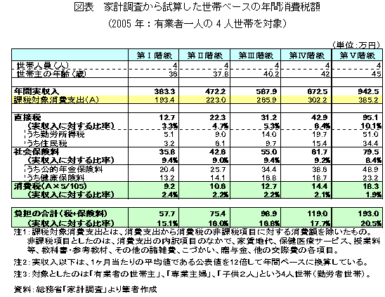 世帯ベースの消費税負担額~逆進性の問題をどう考えるかのレポート Topへ