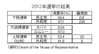 人口比例になっているはずの下院で、得票率が低いにも関わらず共和党の議席数が大幅に民主党を上回っている理由は、選挙区割りに原因があるとされている。民主党議員は圧勝して選出されるのに対して、共和党は微差で勝利するように区割りができており、効率良く議席が獲得できる。2020年に国勢調査が行われるまで選挙区割りの変更は行われないので、議会のねじれは当分続く可能性が高い。ようやくリーマン・ショックによる落ち込みを脱しようとしている米国経済だが、今度は政治的な混乱が障害となっている。
