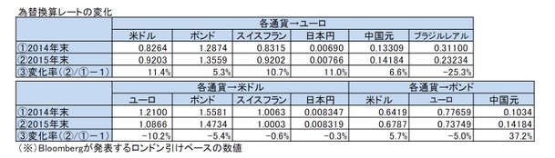 2014年との比較では、欧州での進展率が低く、アジア・太平洋を中心としたその他の地域での進展率が高くなっている。2015年については、米国での進展率が高いものとなっているが、これは米ドルがユーロやポンドに対して強くなったという為替レートによる影響が大きい。