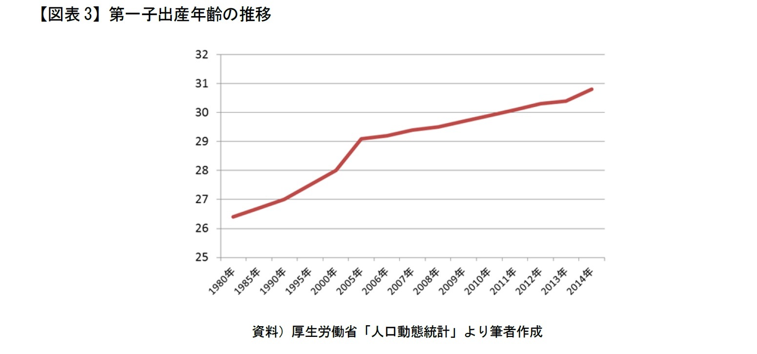 日本では女性の晩産化が着々と進んでいる(図表3)。