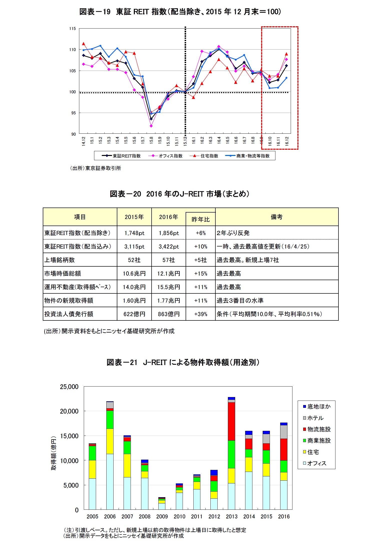 【Jリート市場は年間6%上昇。物件取得額は過去3番目の高水準-不動産クォータリー・レビュー2016年第4四半期】【シンクタンク】ニッセイ基礎研究所は、保険・年金・社会保障、経済・金融・不動産、暮らし・高齢社会、経営・ビジネスなどの各専門領域の研究員を抱え、様々な情報提供を行っています。