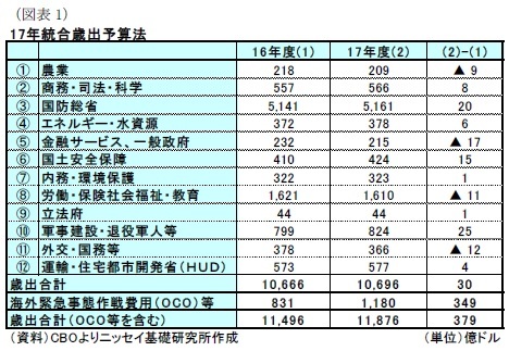 (1) 17年度予算:統合歳出予算法が成立。政府機関の閉鎖リスクは回避