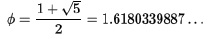 黄金数が表す黄金比とは、「線分をa, b の長さで 2 つに分割するときに、a : b = b : (a + b) が成り立つように分割したときの比 a : b 」(線分を2つに分割する時に、短い部分と長い部分との比が、長い部分と全体との比に等しくなる比率)のことであり、人間にとって最も安定し、美しい比率であるとされているものである。