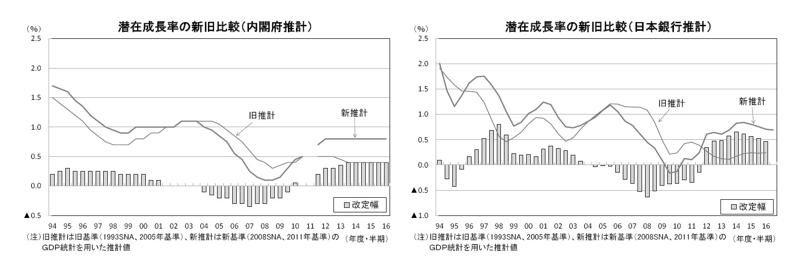 潜在成長率を推計する上で最も重要な統計であるGDP統計は、2016年12月に基準改定(2005年基準→2011年基準)と最新の国際基準への対応(1993SNA→2008SNA)が実施され、過去の成長率が上方改定された。筆者はGDP統計の改定結果が公表されてから約1週間後に潜在成長率の再推計を行い、「GDP統計の改定で1%近くまで高まった日本の潜在成長率」を執筆した。