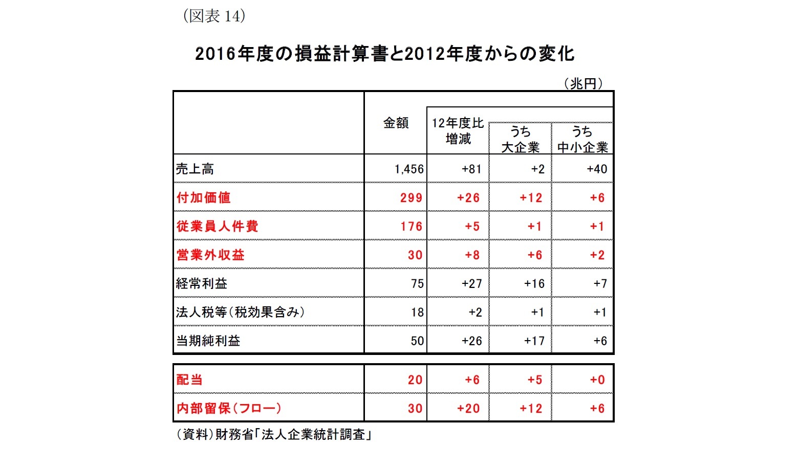 「内部留保」という言葉は「内部に蓄積されたお金」と誤解されることもあるが、実際は「内部に蓄積された過去の利益額」を示すものであり、その利益は次の段階として、様々な用途に使用される。決して、そのまま現預金として貯まっているわけではない。従って、内部留保(利益剰余金)増加によって生み出された資金が将来の利益に繋がる投資に回っているのであれば、人件費等の抑制は成長に向けたやむを得ない措置と捉えることが出来なくもない。