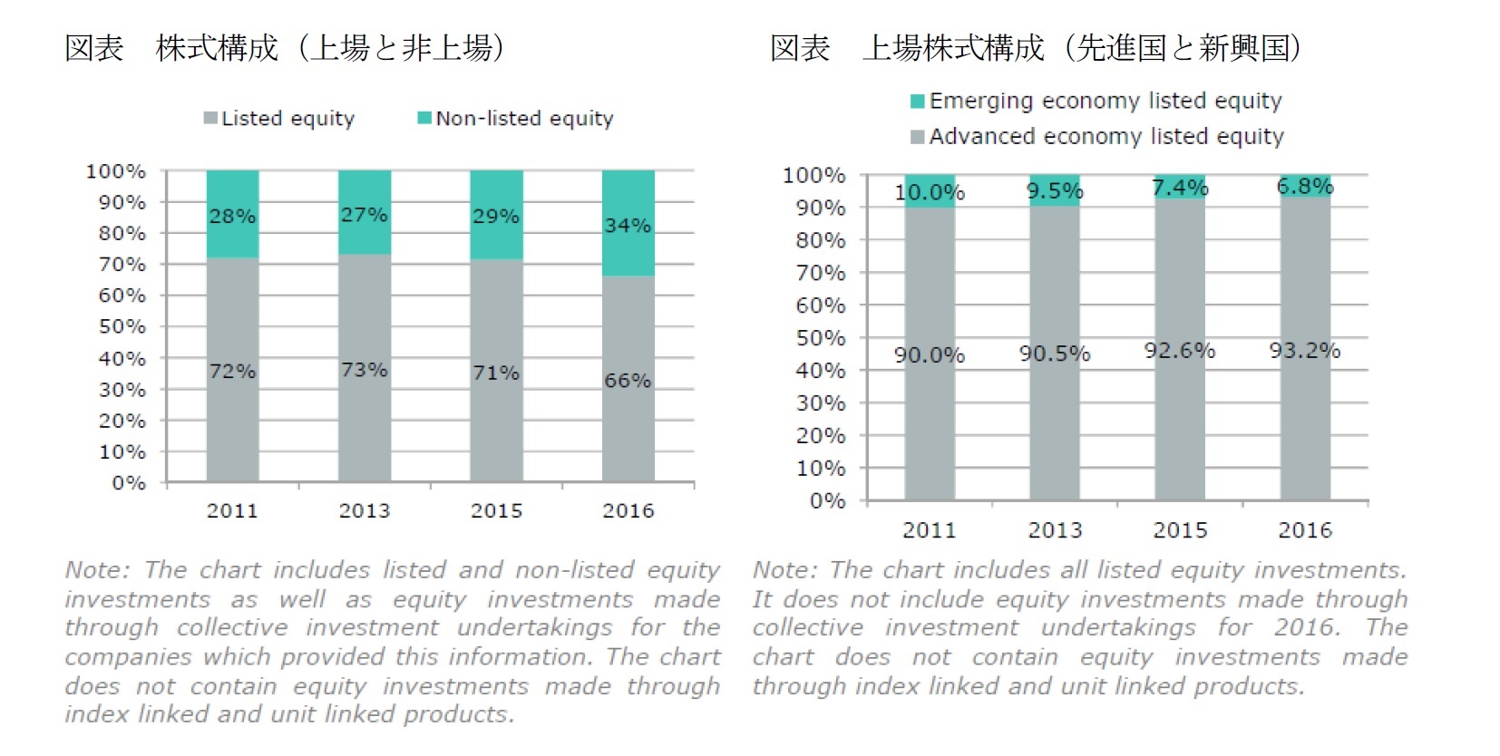 もう1つは上場株式ポートフォリオ内での先進国株式へのシフトであり、上場株式全体における先進国株式の割合は2011年の90.0%から2016年の93.2%に増加している。
