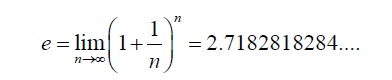 でnをだんだん大きくしていくと到達する数字であり、その値は2.71828…という、いつまでも続く、循環しない無限小数である。これを式で表すと次の通りである。