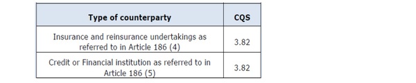 (4) ローカルのソルベンシー要件を満たさず、指定されたECAIによる信用評価が利用できない、同等のソルベンシー制度を有する第三国からの保険会社へのエクスポジャーには、CQS 5を割り当てる。