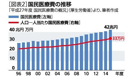 近年、医療費問題が顕著である。国民医療費は2015年度に42兆円。2025年度には50兆円を上回ると見通される*1。