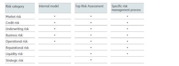以下のセクションで我々のリスク管理プロセスを構成する3つの大きく定義された要素に関するさらなる詳細を提供しているが、これらは我々がさらされている重要な全てのリスクカテゴリを統合的に取り扱っている。