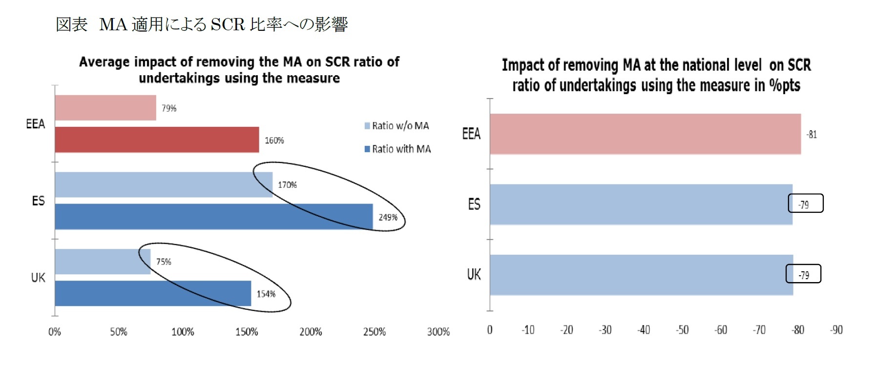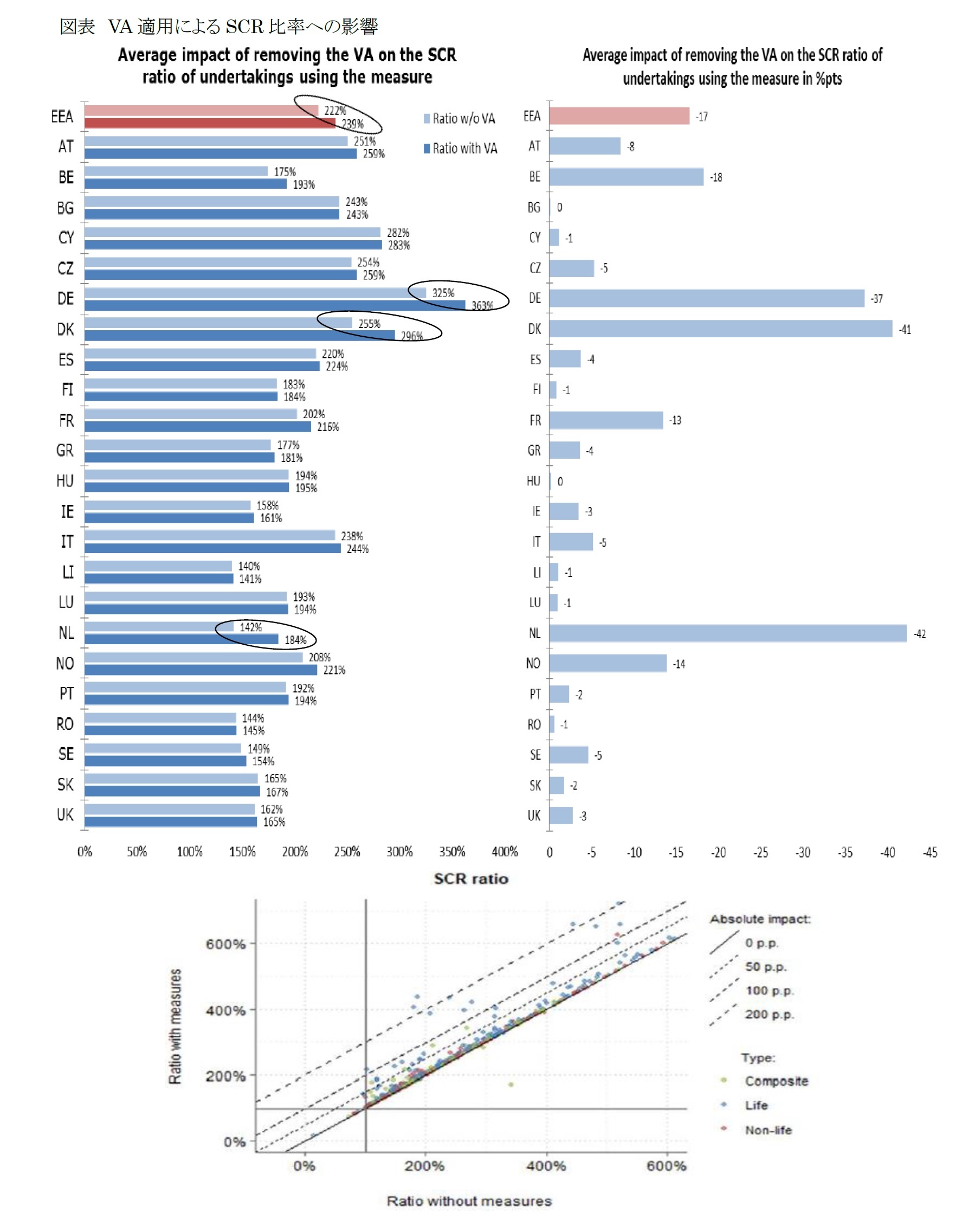 VAを適用しなかった場合のSCR比率への影響については、以下の上の図表の通りである。