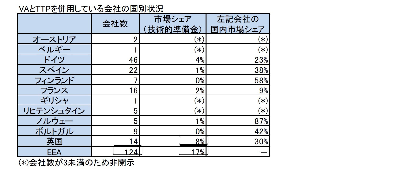 なお、会社の種類別では、生命保険会社や生損保兼営会社だけでなく、損害保険会社も同様に動的VAを適用している。