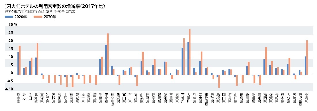 - 都道府県別にみたホテルの稼働率予測ーインバウンド拡大に伴う建設が進み、一部地域では供給過剰も