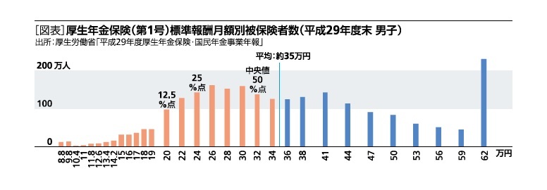 * 老齢厚生年金は標準報酬月額だけでなく標準賞与額の影響も受けるが、ここでは標準賞与額は標準報酬月額と概ね比例関係にあることを前提に計算している。