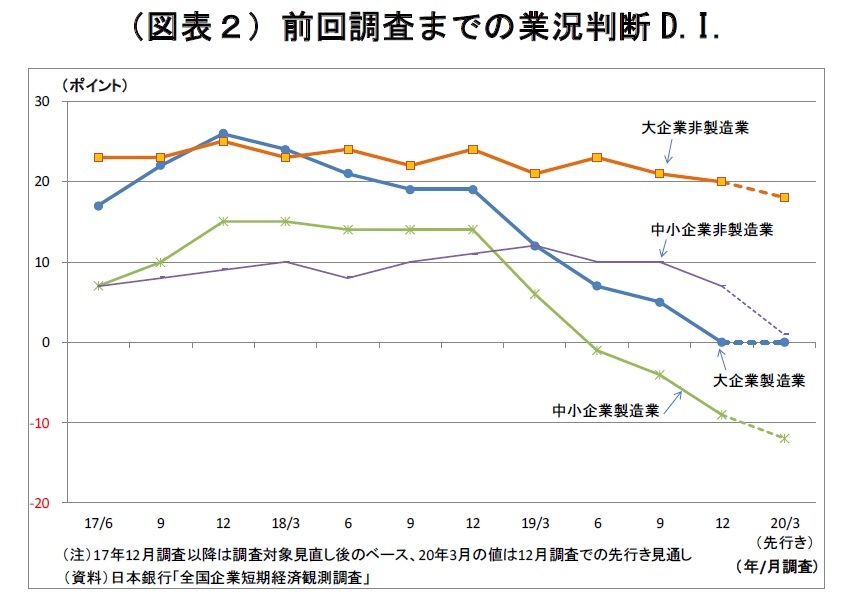 - 日銀短観(3月調査)予測~大企業製造業の業況判断D.I.は10ポイント低下の▲10と予想