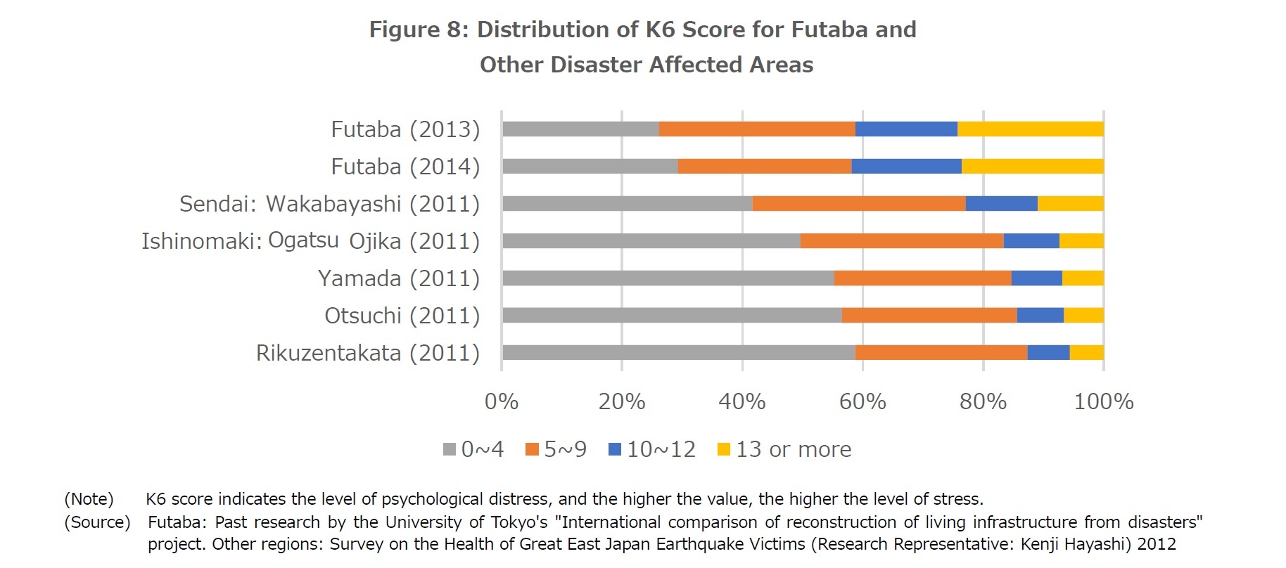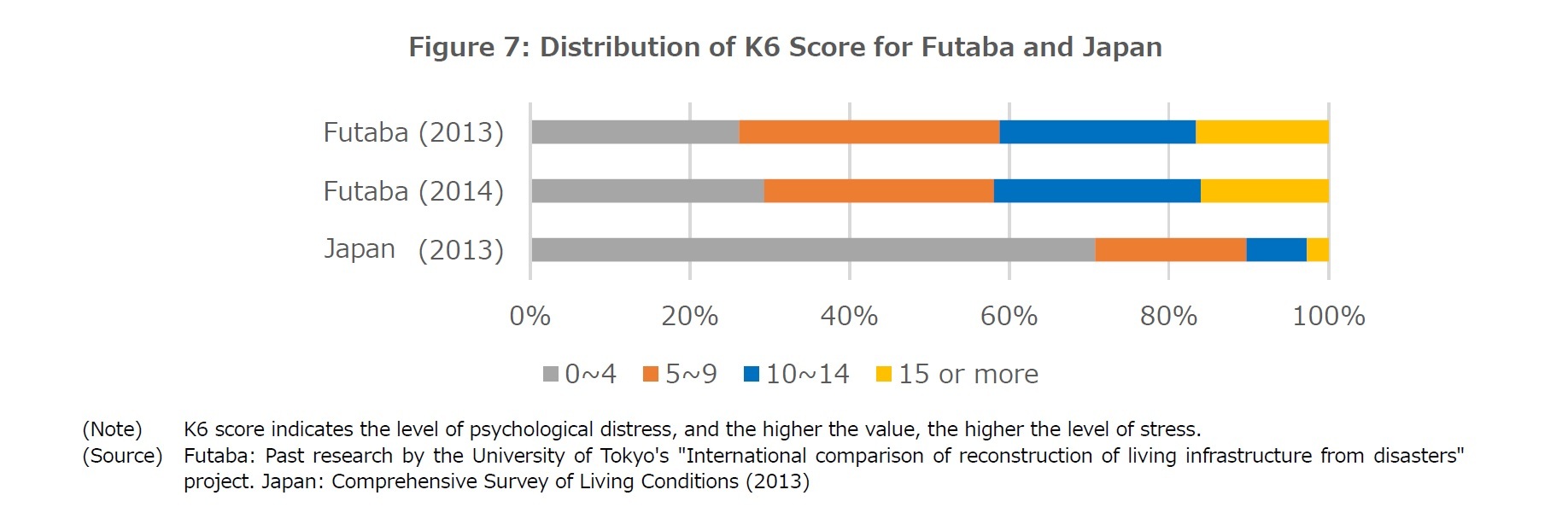 However, the results of this survey do not necessarily apply to all residents of Futaba, and a high K6 score does not necessarily mean that one has a mental disorder. Please note that the purpose of our survey is to provide policy implications to the Government or other administrative agencies.