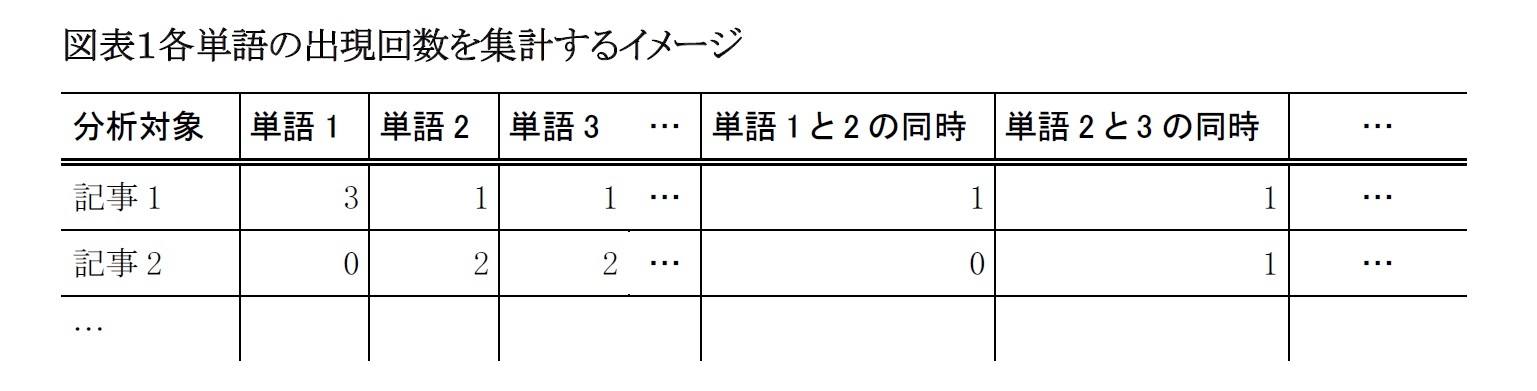 9 この他に、大量の文字情報をコンピュータで処理できる、という特徴もあるが、後述するように分析結果を解釈するには人間が原文を読む必要があるため、必ずしもメリットとは言えない。