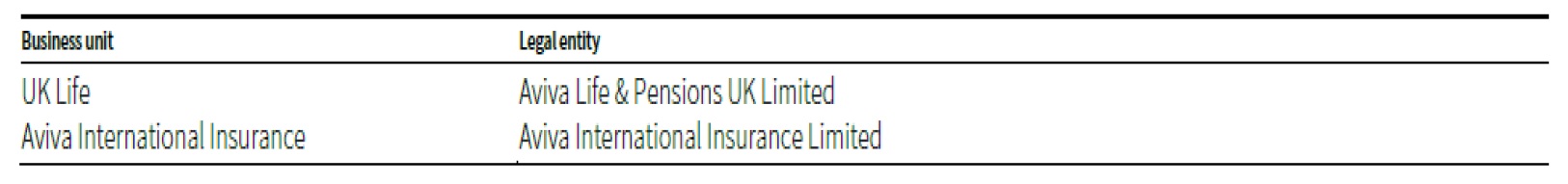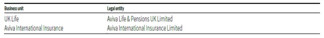 Aviva Groupは、以下の会社に、技術的準備金に関する移行措置を適用している。