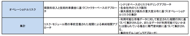 なお、全体的な集計方法は、市場、信用、生命、損害及びオペレーショナル要件の楕円集計に基づいている。