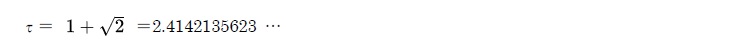 改めて、「白銀比(silver ratio)」というのは、通常ギリシア文字の「τ(タウ)」という記号で表される「白銀数」を用いて表現される比率、のことで、「白銀数(silver number)」は、