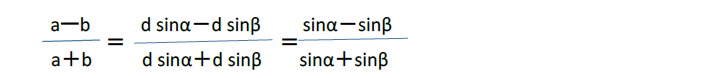 から、α-βを求めることができ、α+β(=180°―γ)も分かるので、αとβを求めることができることになる。