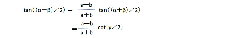 この「正接定理」により、三角形の2辺の長さとその間の角度γが与えられている場合に、