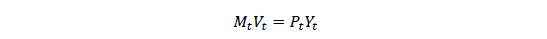 最も単純な貨幣数量説によると、名目総需要に関して以下の方程式が成立する。