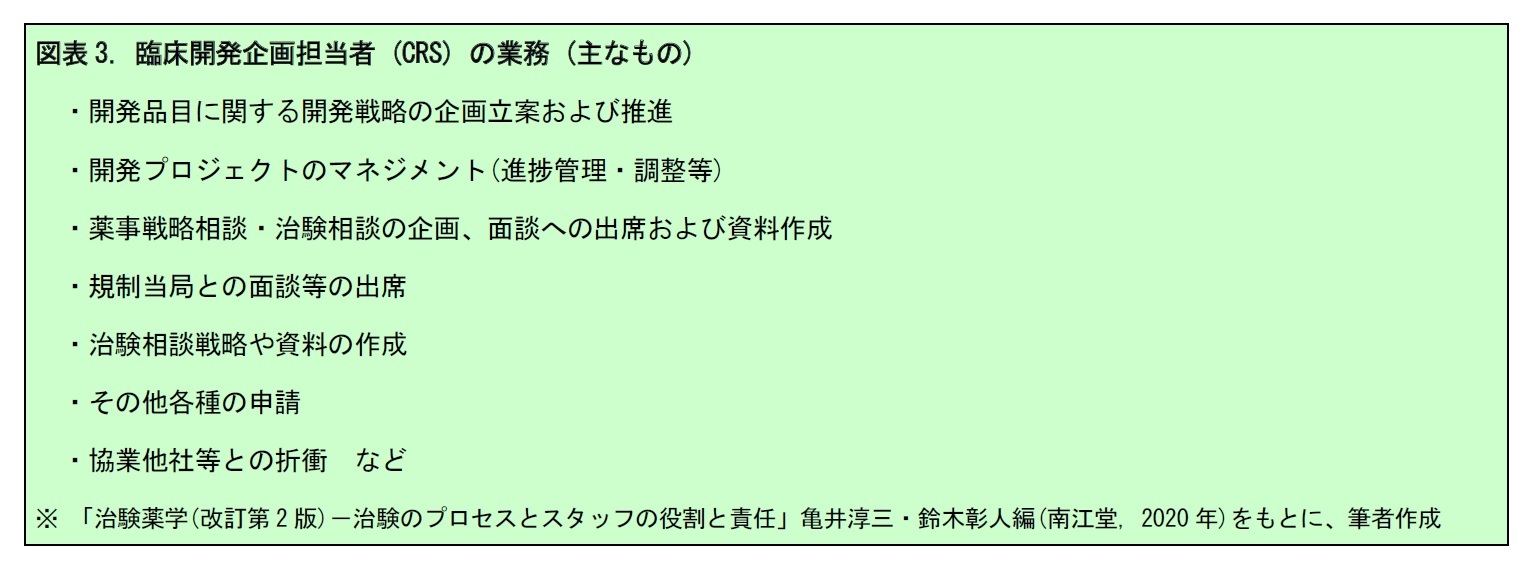 1|治験依頼者側では、臨床開発企画担当者(CRS) と 臨床開発モニター(CRA) が中心的