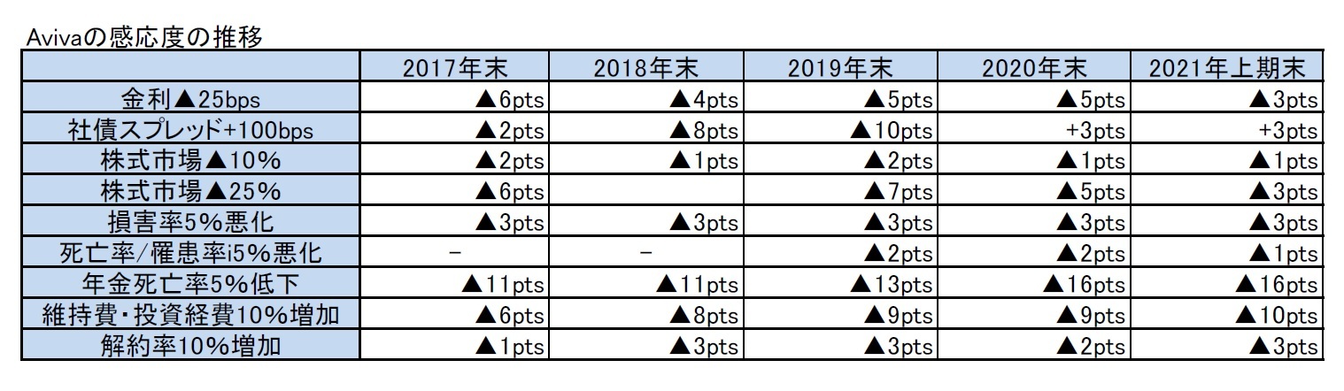 なお、Avivaは、感応度分析に関して、以下の補足説明を行っている。