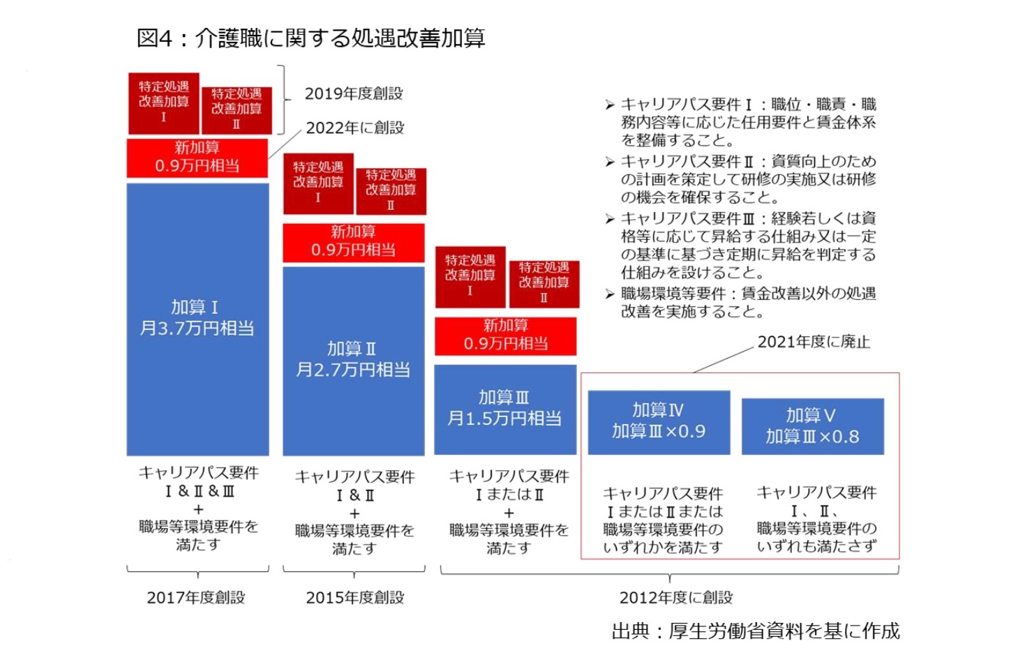 今回の給与引き上げ措置を反映した制度のイメージは図4の通りであり、2012年度改定以降、段階的に給与を引き上げる過程で、「老舗の温泉旅館の建て増し」のように改廃を積み重ねた結果、かなり制度が複雑になっている様子を確認できる。
