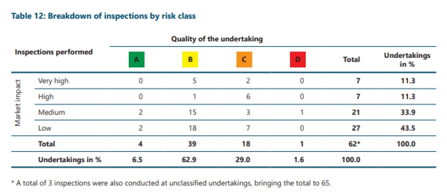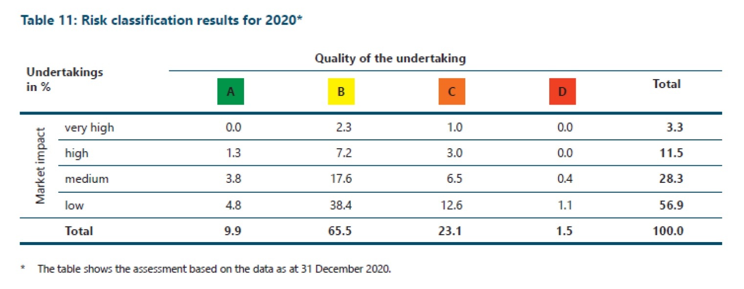BaFinは、監督する保険会社をリスククラスに割当て、保険会社がどの程度緊密に監督されるべきかを定義するために使用している。
