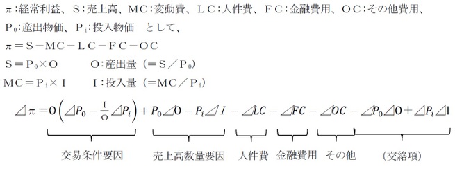 また、非製造業については、投入・産出物価指数が存在しないことから、簡易的に「売上数量(産出量)=第3次産業活動指数」「売上価格=売上高/第3次産業活動指数」「投入物価=変動費/投入量」「投入量=産出量」としたうえで、経常利益を分解した。