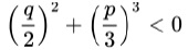 の時に負の数の平方根が現れる形になる。一方で、これは先に述べた三次方程式の判別式D>0の場合に相当していることから、相異なる3個の実数解を持つ条件に合致していることになる。即ち、実数解しかないにもかかわらず、カルダノの公式では「負の数の平方根」が現れてくることになる。