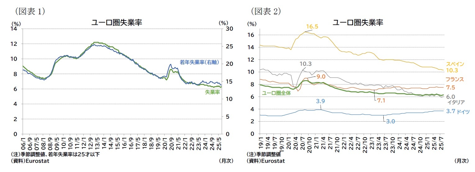 ユーロ圏失業率(2025年8月)-失業率は6.3%で低水準だがやや悪化 -