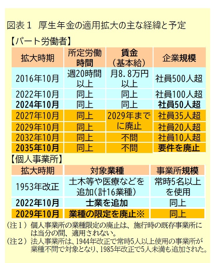 *2 なお、適用拡大に伴う働き控えを抑える措置(3年間の保険料軽減)の施行は、2026年10月となっている。