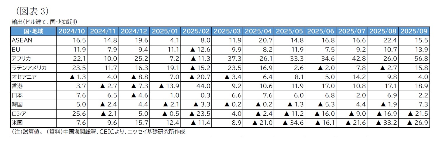 2025/10/14 | 中国の貿易統計(25年9月)~輸出、輸入とも加速。対米輸出は減少が続く | 三浦 祐介 | 経済・金融フラッシュ |
